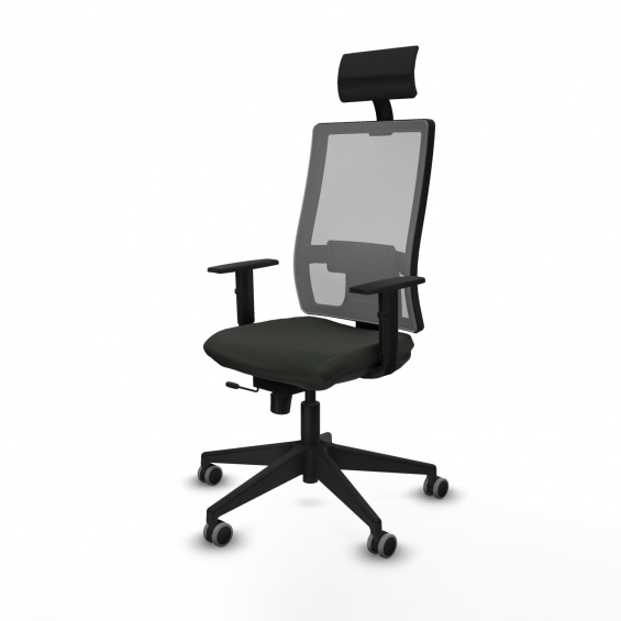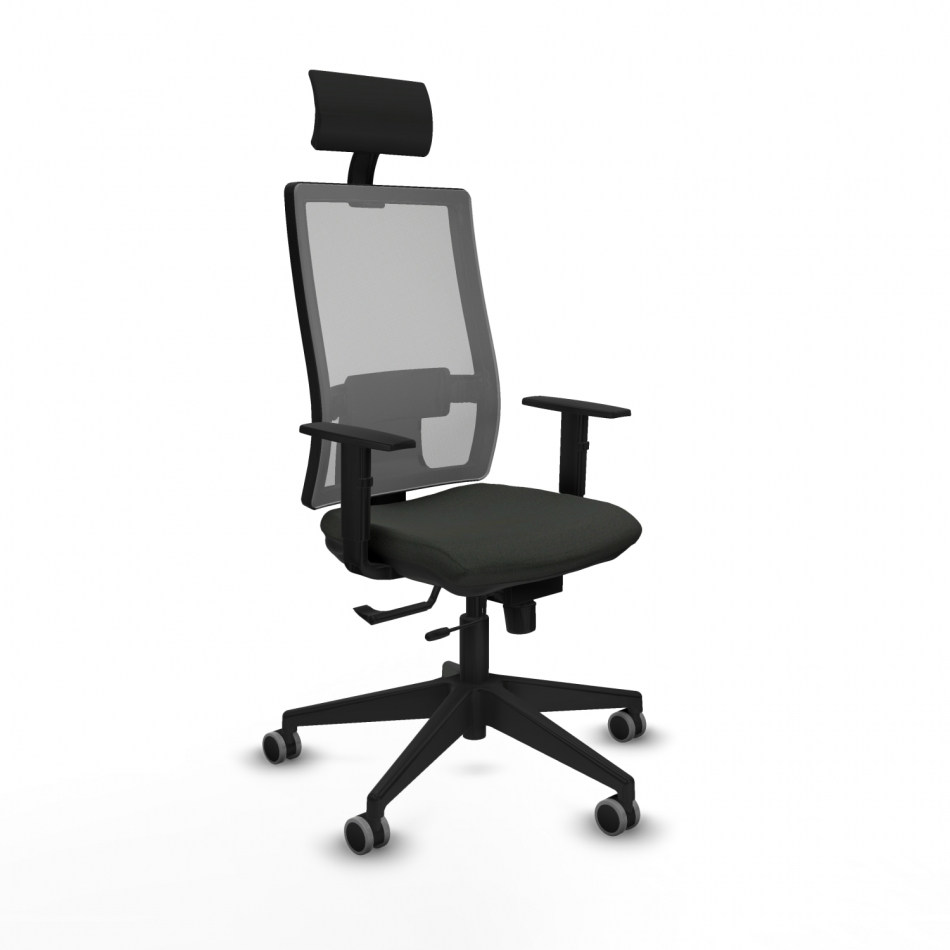 Piqueras y Crespo Horna traslack malla gris bali negro brazos 1D base piramidal cabecero fijo ruedas 65mm engomadas