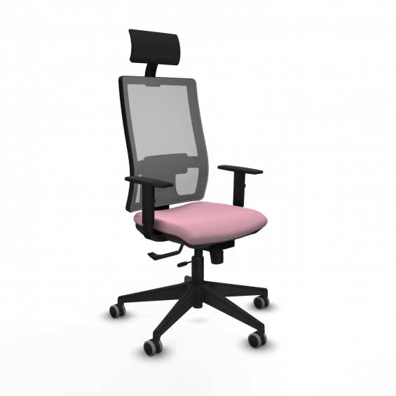 Piqueras y Crespo Horna traslack malla gris bali rosa brazos 1D base piramidal cabecero fijo ruedas 65mm engomadas