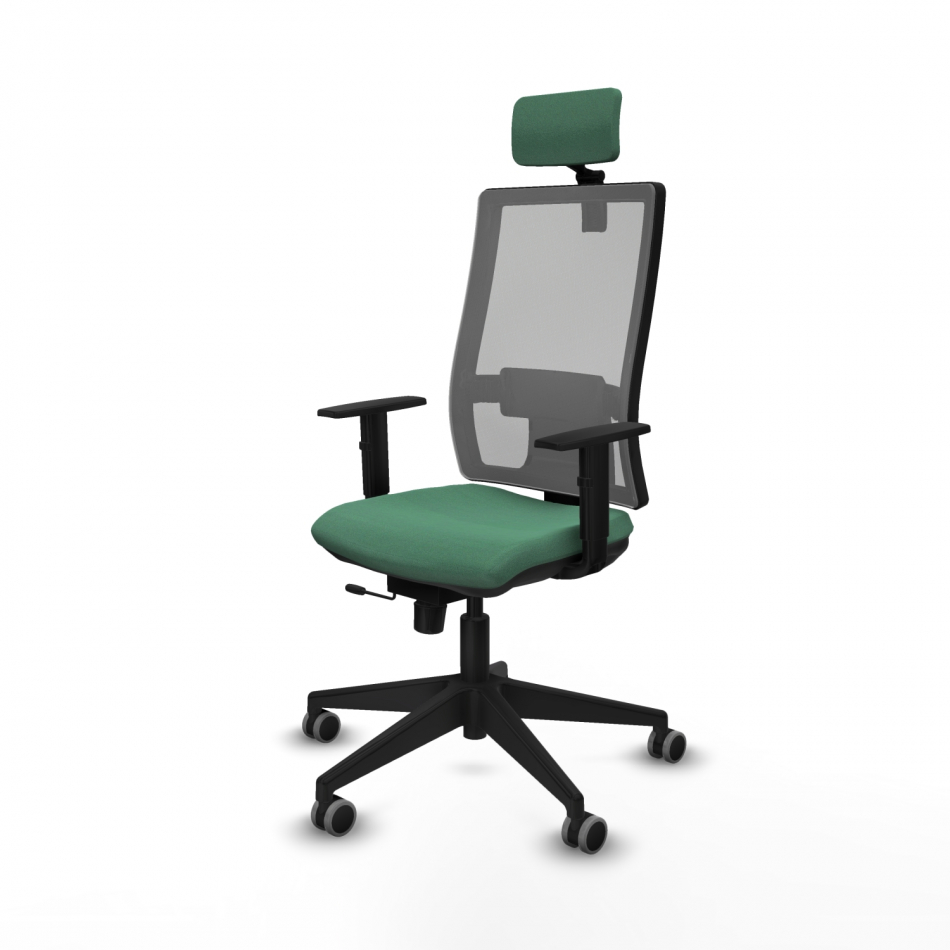 Piqueras y Crespo Horna traslack malla gris bali verde esmeralda brazos 1D base piramidal cabecero 2D ruedas 65mm engomadas