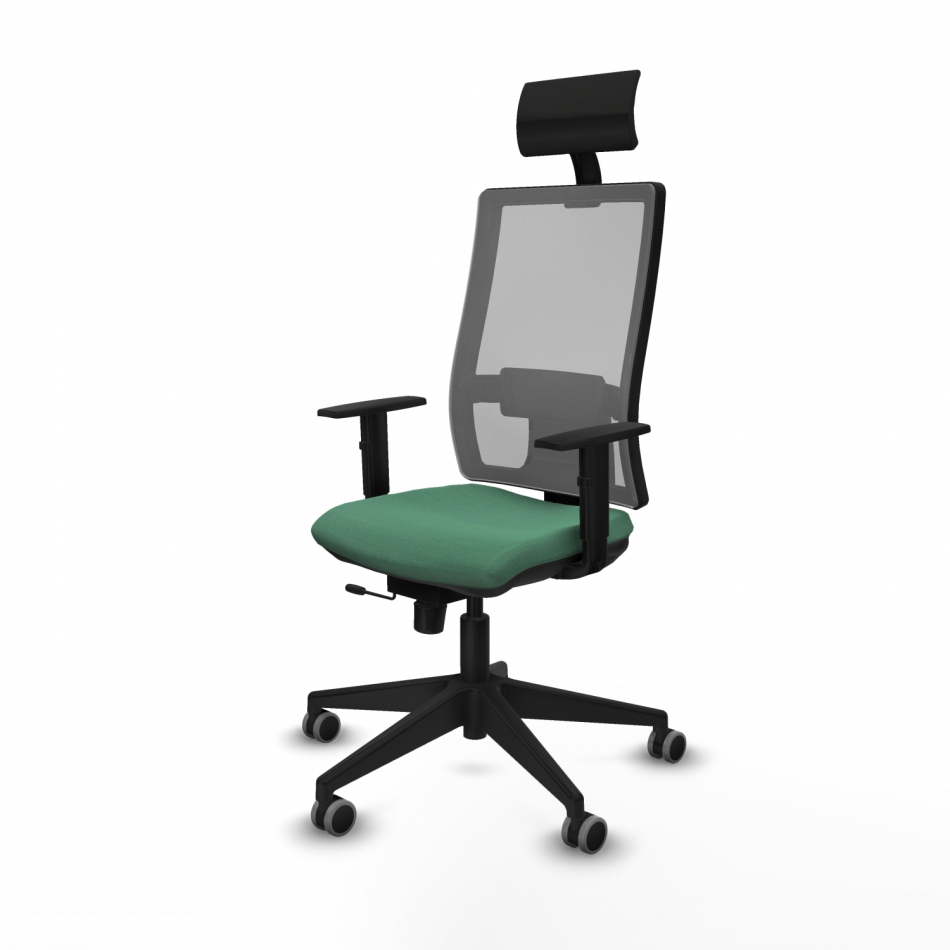 Piqueras y Crespo Horna traslack malla gris bali verde esmeralda brazos 1D base piramidal cabecero fijo ruedas 65mm engomadas
