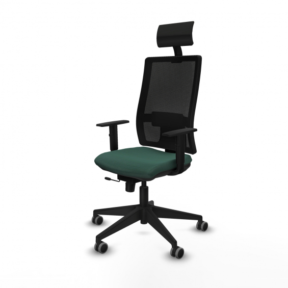 Piqueras y Crespo Horna traslack malla negra bali verde botella brazos 1D base piramidal cabecero fijo ruedas 65mm engomadas