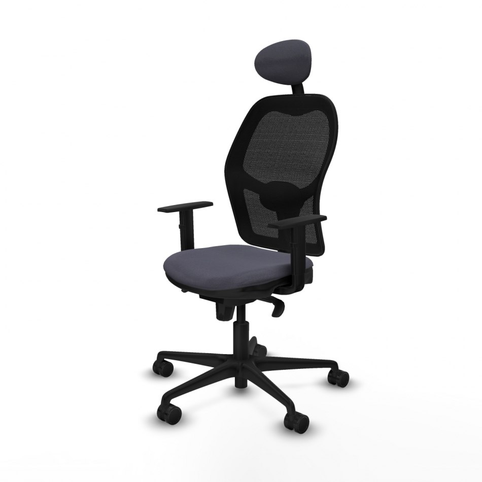 Piqueras y Crespo Jorquera sincro malla negra bali gris oscuro brazos 1D base nailon cabecero fijo ruedas 65mm nailon