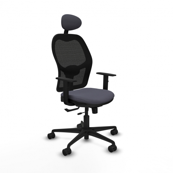 Piqueras y Crespo Jorquera traslack malla negra bali gris oscuro brazos 1D base nailon cabecero fijo ruedas 65mm nailon