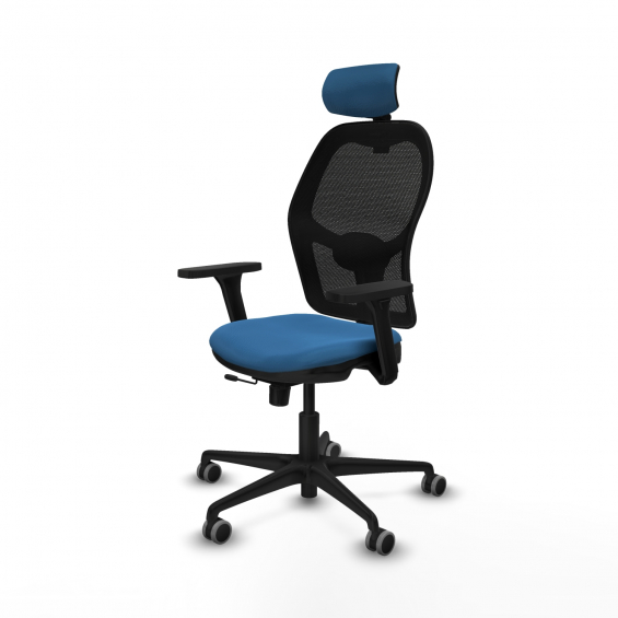 Piqueras y Crespo Jorquera traslack malla negra similpiel azul claro brazos 3D base nailon cabecero 2D ruedas 65mm engomada
