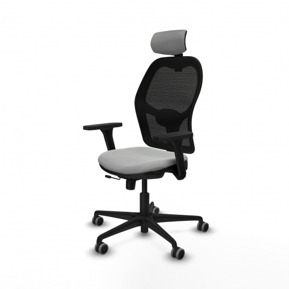 Piqueras y Crespo Jorquera traslack malla negra similpiel gris claro brazos 3D base nailon cabecero 2D ruedas 65mm engomada