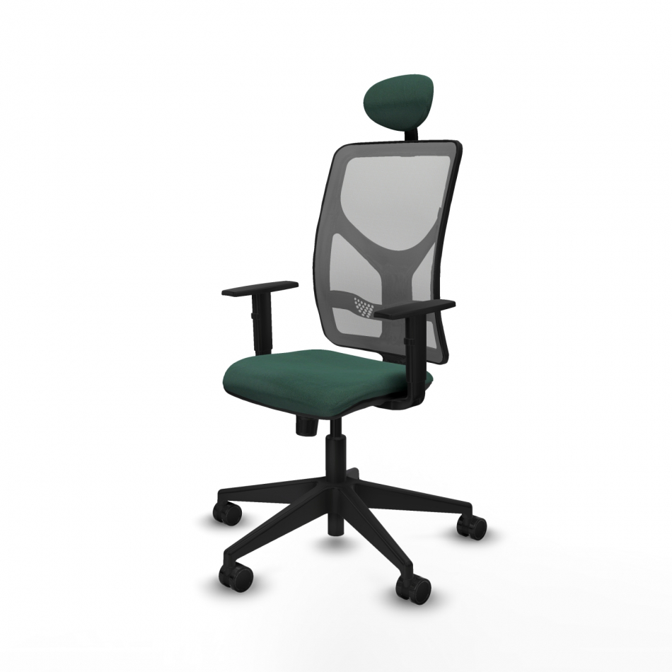 Piqueras y Crespo Motilla sincro malla gris bali verde botella brazos 1D base piramidal cabecero fijo ruedas 65mm nailon