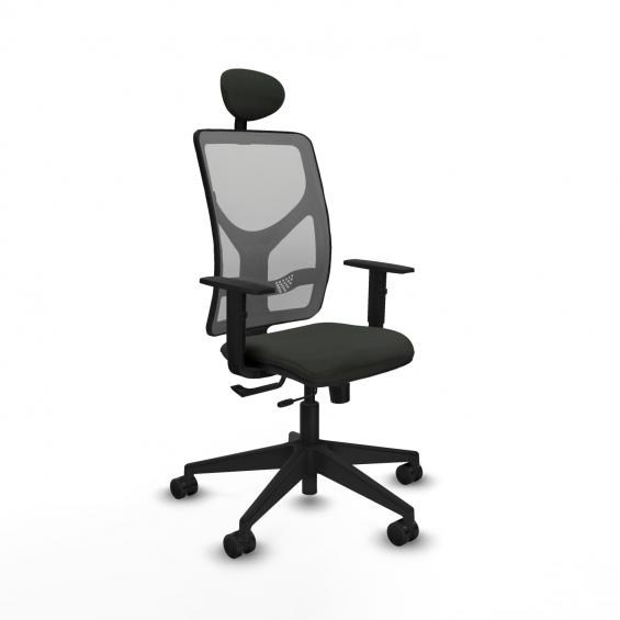 Piqueras y Crespo Motilla traslack malla gris bali negro brazos 1D base piramidal cabecero fijo ruedas 65mm nailon