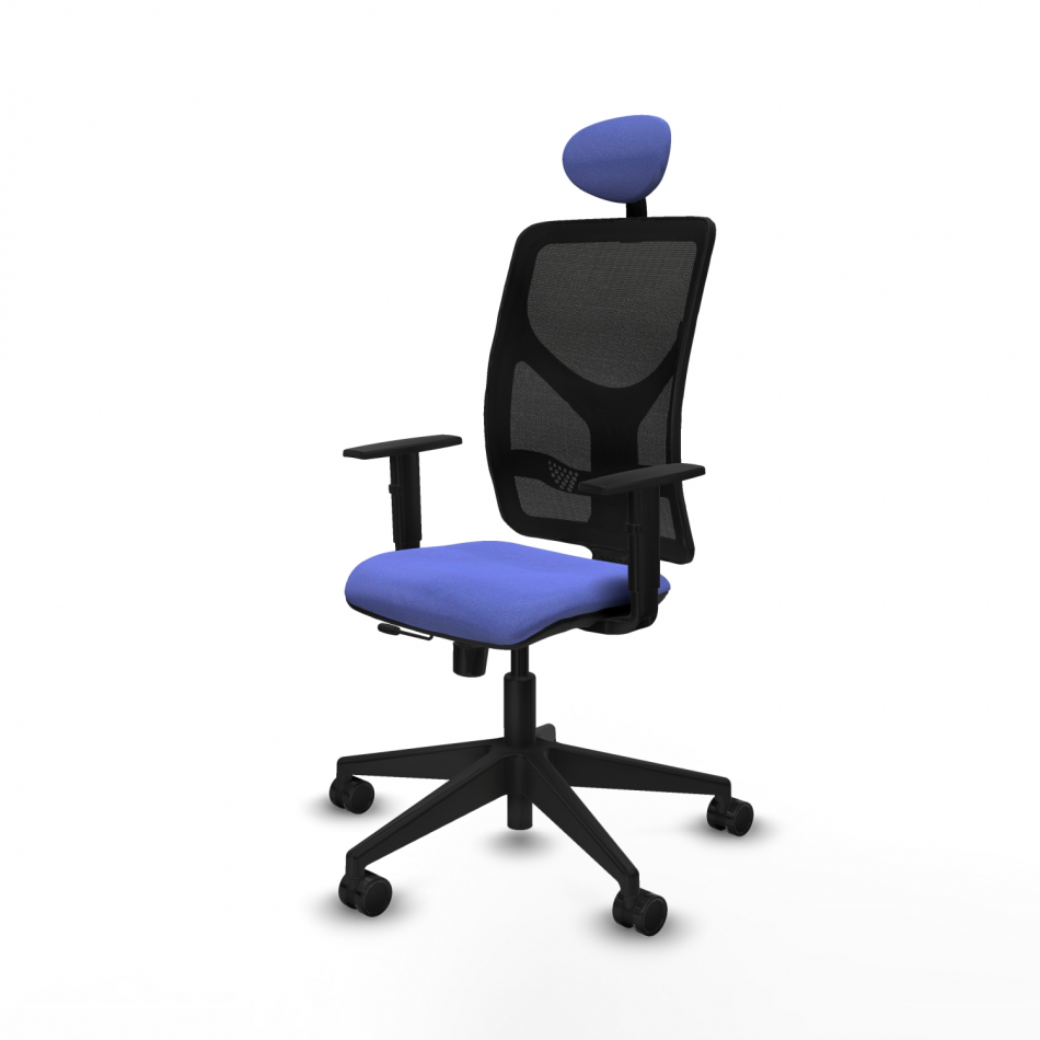 Piqueras y Crespo Motilla traslack malla negra bali azul claro brazos 1D base piramidal cabecero fijo ruedas 65mm nailon