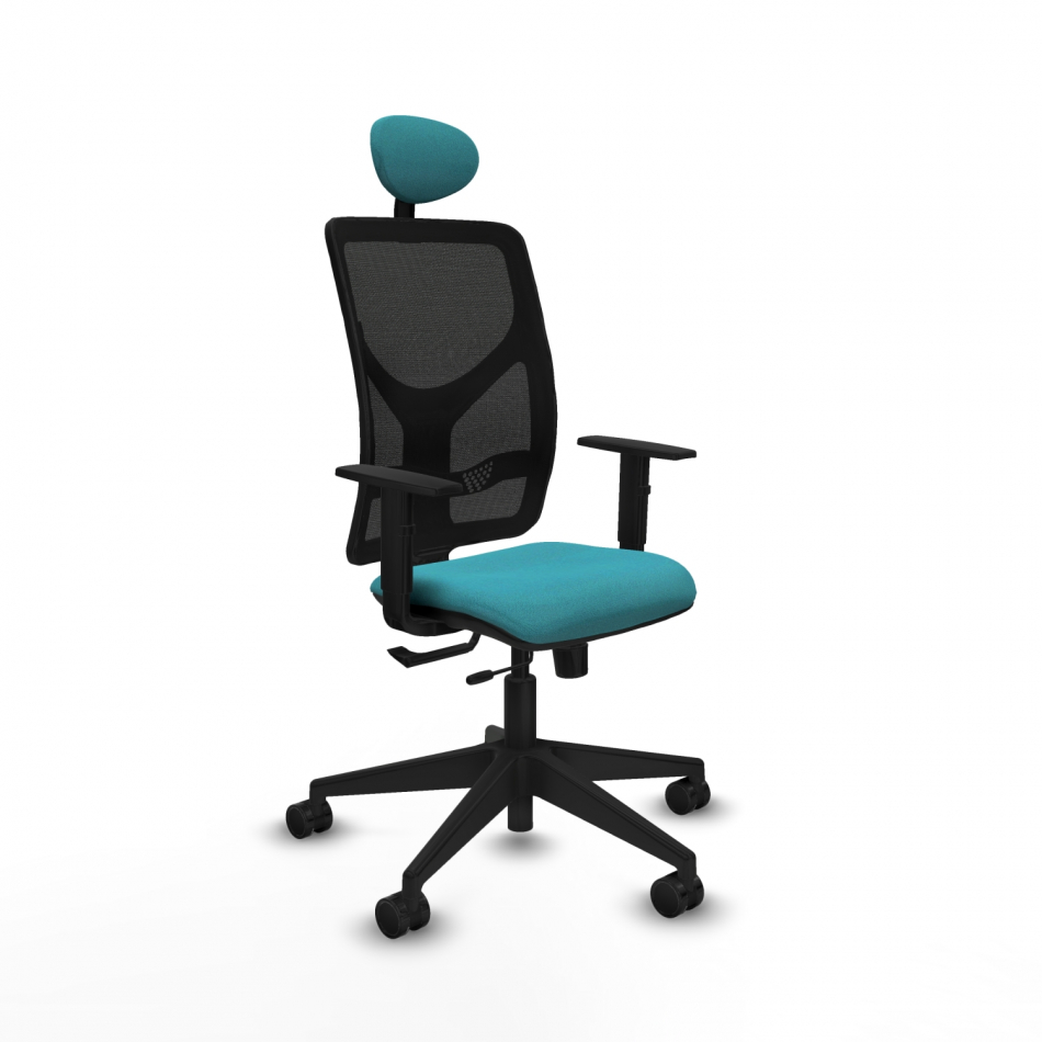 Piqueras y Crespo Motilla traslack malla negra bali turquesa brazos 1D base piramidal cabecero fijo ruedas 65mm nailon
