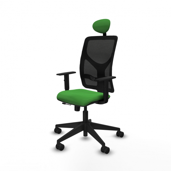 Piqueras y Crespo Motilla traslack malla negra bali verde brazos 1D base piramidal cabecero fijo ruedas 65mm nailon