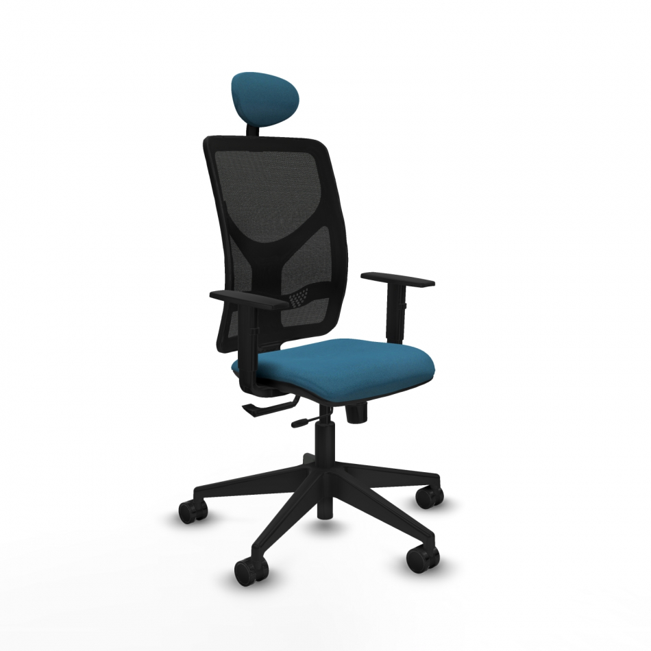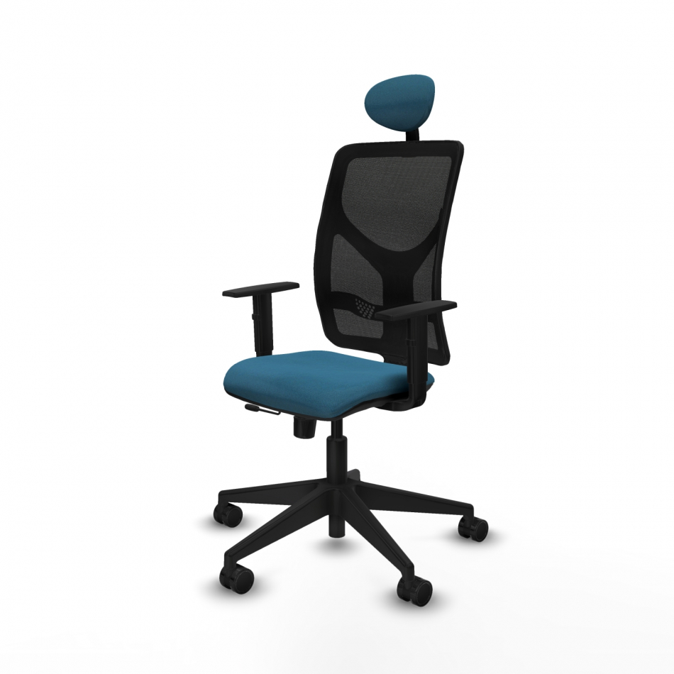 Piqueras y Crespo Motilla traslack malla negra bali verde petroleo brazos 1D base piramidal cabecero fijo ruedas 65mm nailon