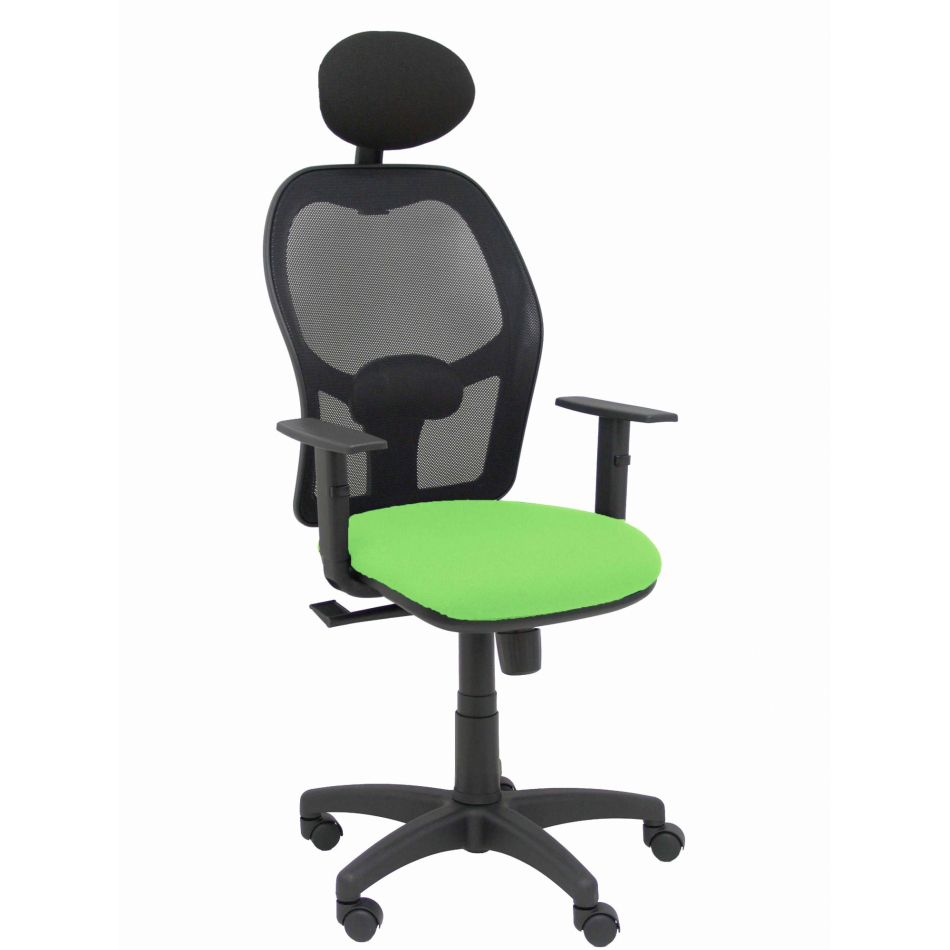 Piqueras y Crespo Silla Alocén malla negra asiento bali pistacho brazos regulables cabecero fijo