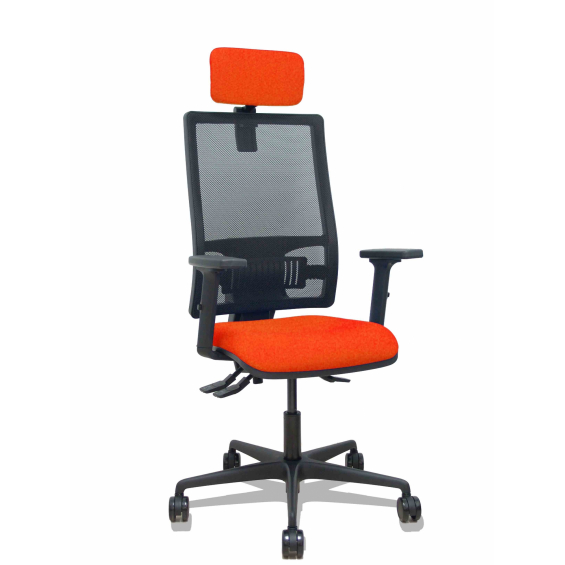 Piqueras y Crespo Silla Bormate asincro malla negra asiento bali naranja oscuro brazos 2D ruedas 65mm cabecero regulable