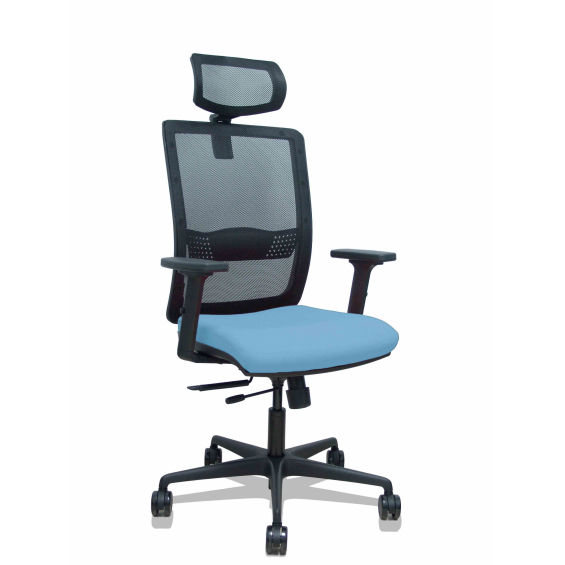 Piqueras y Crespo Silla Haches traslack malla negra asiento bali azul cielo brazos 2D ruedas 65mm cabecero regulable