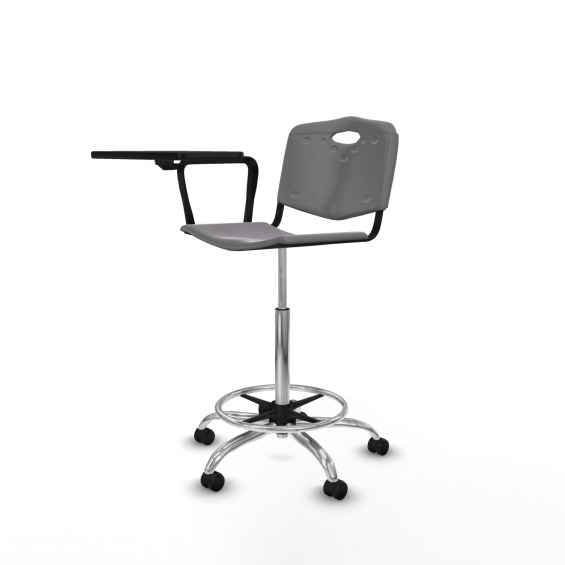 Piqueras y Crespo Taburete Robledo giratorio pl?stico gris claro brazo con pala diestros base cromada ruedas autofrenantes 50mm