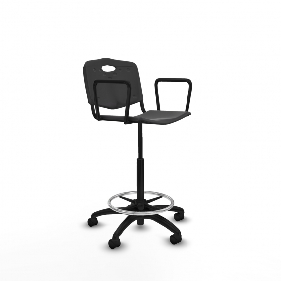 Piqueras y Crespo Taburete Robledo giratorio pl?stico negro brazos fijos base poliamida ruedas nailon 50mm
