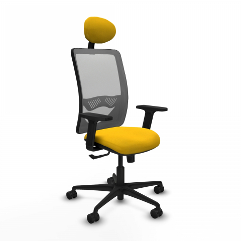 Piqueras y Crespo Zulema sincro malla gris bali amarillo brazos 2D base nailon cabecero fijo ruedas 65mm nailon