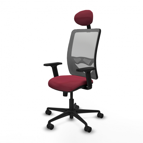 Piqueras y Crespo Zulema sincro malla gris bali granate brazos 2D base nailon cabecero fijo ruedas 65mm nailon