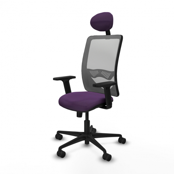 Piqueras y Crespo Zulema sincro malla gris bali morado brazos 2D base nailon cabecero fijo ruedas 65mm nailon
