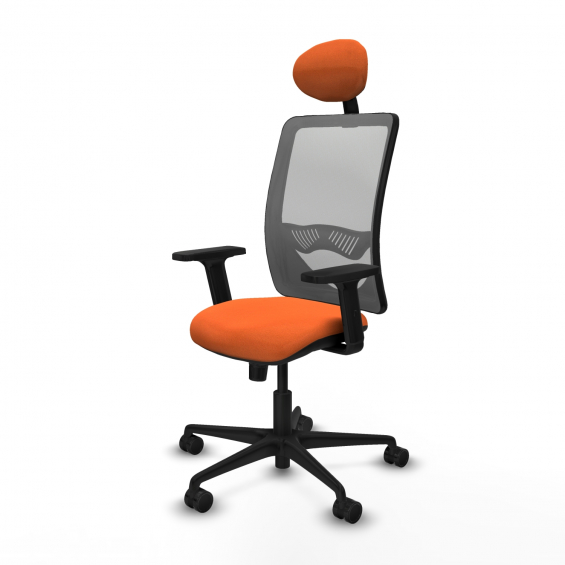Piqueras y Crespo Zulema sincro malla gris bali naranja brazos 2D base nailon cabecero fijo ruedas 65mm nailon