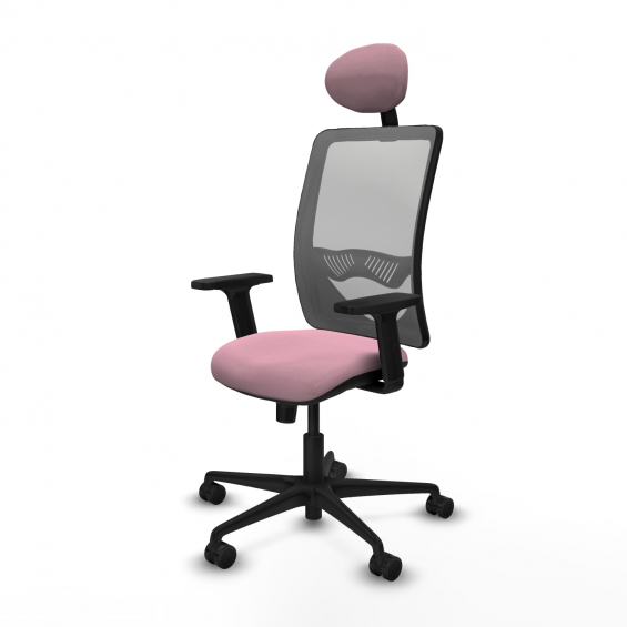 Piqueras y Crespo Zulema sincro malla gris bali rosa brazos 2D base nailon cabecero fijo ruedas 65mm nailon