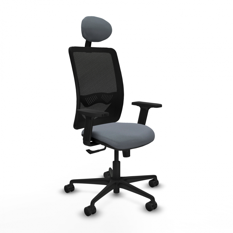 Piqueras y Crespo Zulema sincro malla negra bali gris brazos 2D base nailon cabecero fijo ruedas 65mm nailon