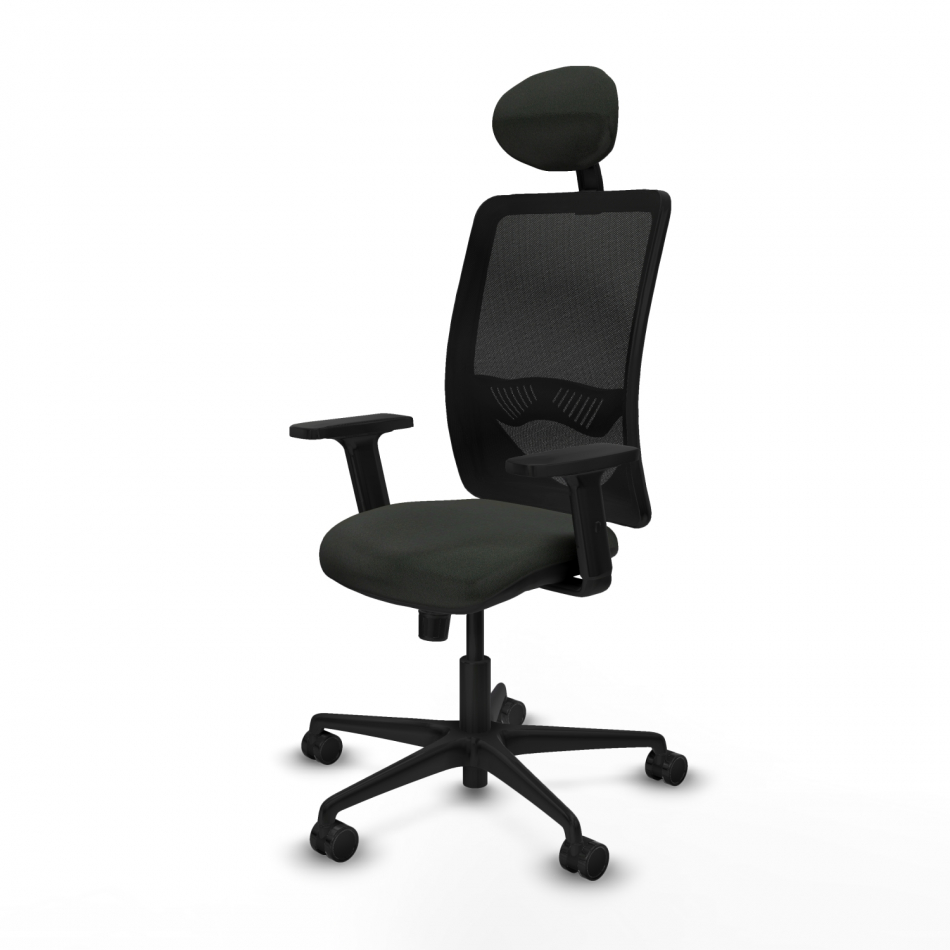 Piqueras y Crespo Zulema sincro malla negra bali negro brazos 2D base nailon cabecero fijo ruedas 65mm nailon