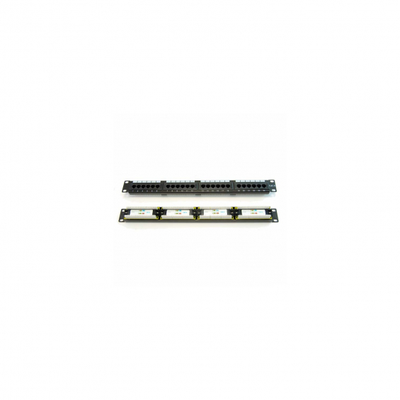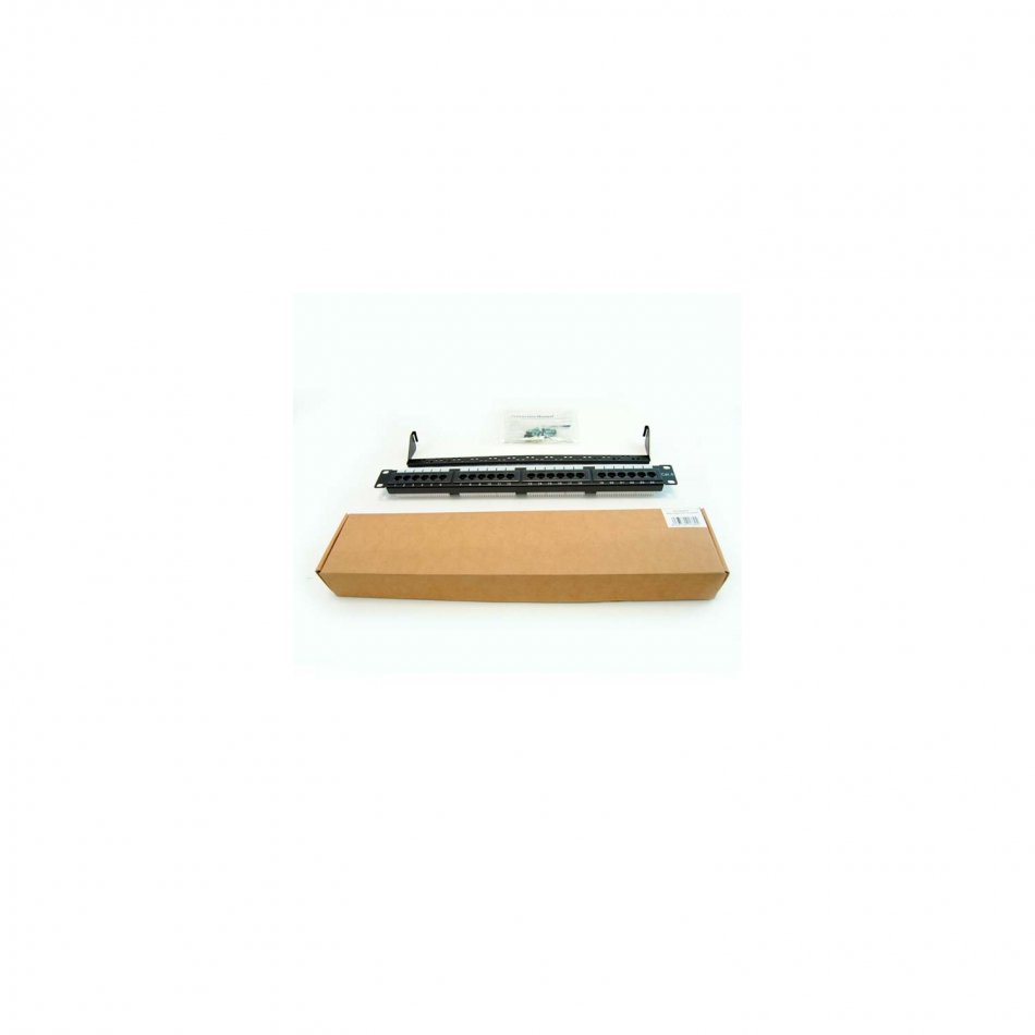 Patch Panel 24 puertos Cat 6 UTP RJ45 Compatible con Cat 5e UTP. Es adecuado para gabinete estándar de 19â?³. El bloque de conexión admite AWG22-26 Contactos chapado en oro de 50 micro pulgadas. Material: PC / PPO.