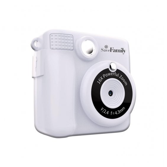 SaveFamily Print Camara de fotos infantil instantánea-Digital Videos Musica Zoom Flash Incluye 2 Rollos de Papel + 400 Fotos BLANCA