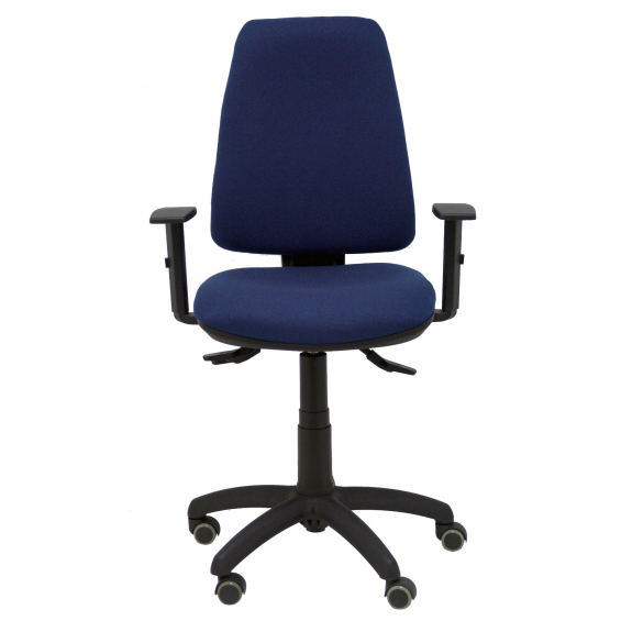 PIQUERAS Y CRESPO Modelo Elche S - Silla de oficina ergonómica con mecanismo sincro, regulable en altura y ruedas de parquet - Asiento y respaldo tapizados en tejido BALI color azul marino (BRAZOS REGULABLES EN ALTURA) 14SBALI200B10RP