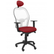 PIQUERAS Y CRESPO Modelo Jorquera - Silla de oficina ergonómica con mecanismo sincro, brazos regulables y ajustable en altura Respaldo de malla transpirable en color blanco y asiento tapizados en tejido BALI color granate (CON CABECERO) 15SBBALI933C