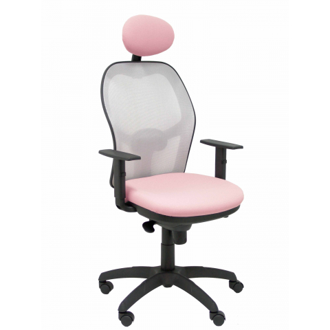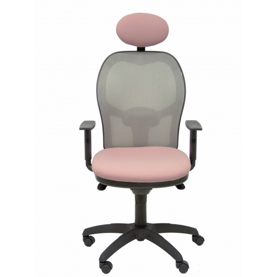 PIQUERAS Y CRESPO Modelo Jorquera - Silla de oficina ergonómica con mecanismo sincro, brazos regulables y ajustable en altura Respaldo de malla transpirable en color gris y asiento tapizados en tejido BALI color rosa pálido (CON CABECERO) 15SGRBALI710C