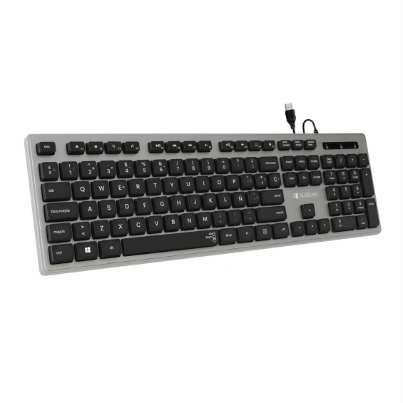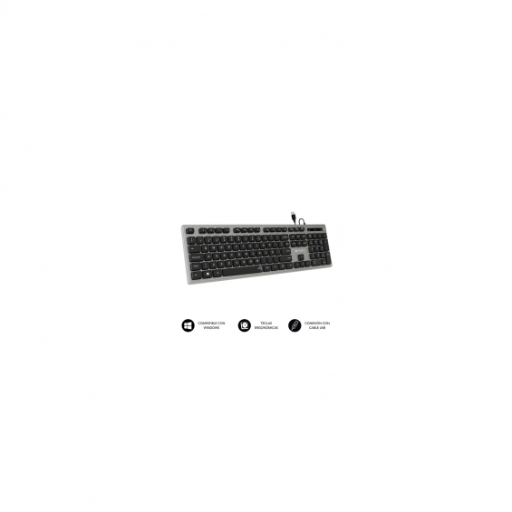 - Conexión por cable USB Plug & Play con máxima protección y seguridad - Teclas Ergonómicas de bajo perfil y con forma cóncava para una máxima comodidad y precisión - Pulsaciones Silenciosas y Suaves para no molestar a los que están a tu alrededor - Disposición de tamaño completo (105 Teclas) con Teclado Numérico y separación entre las teclas para facilitar la limpieza - 12 teclas de Función y Accesos directos - Patas traseras regulables en altura y topes de goma antideslizantes