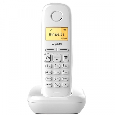 Gigaset A270. Tipo: Teléfono DECT, Tipo de auricular: Terminal inalámbrico. Altavoz. Rango máximo en interiores: 50 m, Rango máximo en exteriores: 300 m. Capacidad de lista de direcciones: 80 entradas. Identificador de llamadas. Diagonal de la pantalla: 3,81 cm (1.5"). Color del producto: Blanco. Número de teléfonos móviles incluidos: 1