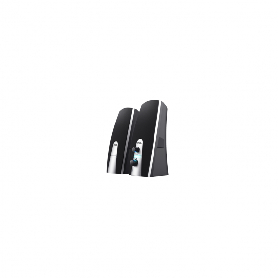 - 5 W 2.0 canales - Número de satélites: 2 - Integrado Amplificador - Alámbrico - Control de volumen: Giratorio - Negro, Metálico