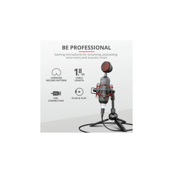 TRUST GAMING GXT 244 BUZZ MICROFONO USB STREAMING GRABACION CARDIOIDE ALTA PRECISION SOPORTE AMORTIGUADOR TRIPODE NEGRO ROJO 23466