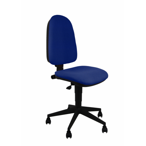 Silla Operativa Team tapizada en azul. Contacto permanente con asiento y respaldo ergonómico. Reposabrazos opcionales no incluidos. Cumple con normativa EN1335 y certificación TUV